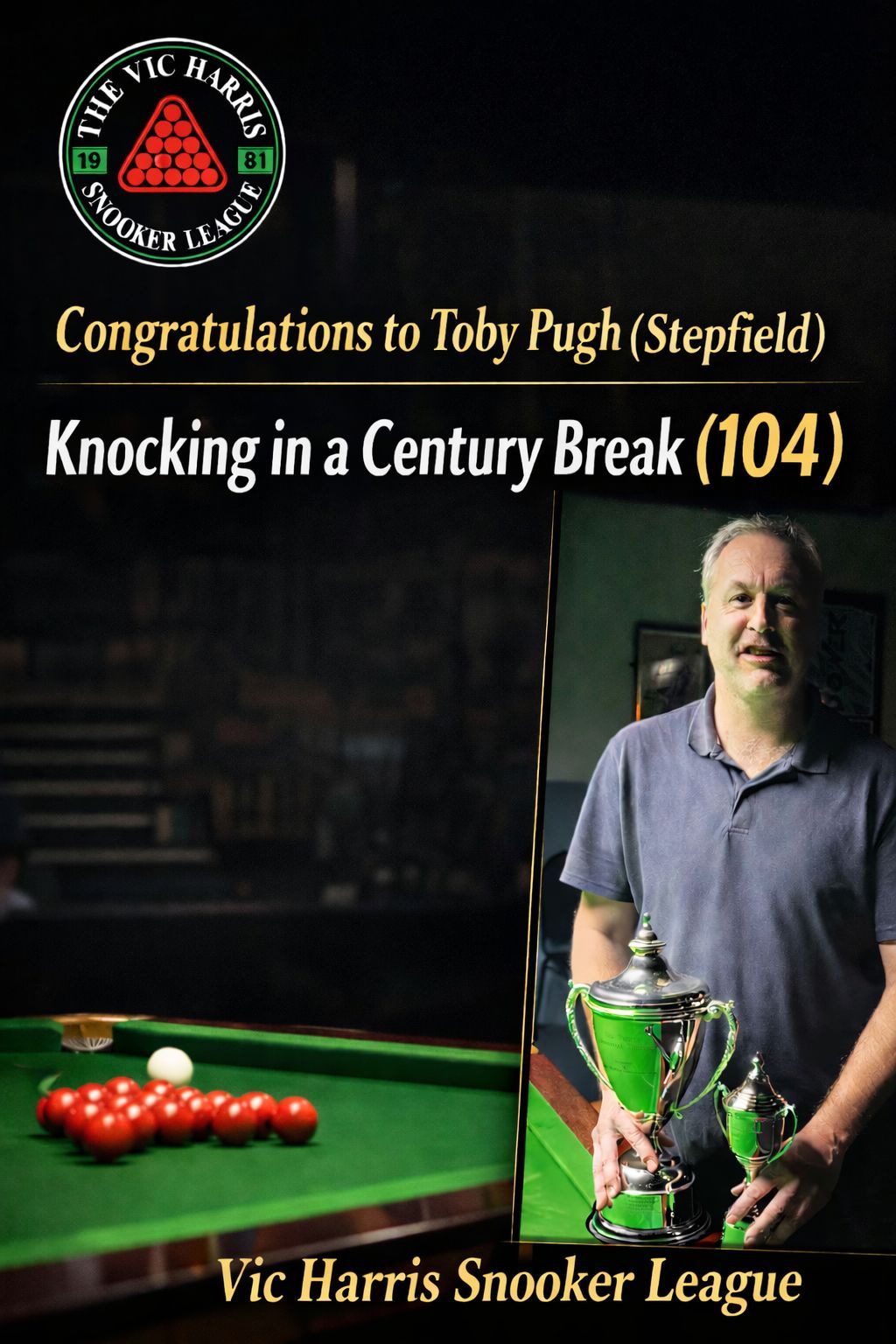 KNOCKING IN A 102 BREAK LAST NIGHT IN KO CUP MATCH, welcome to the Trophy Century Club - well done fella.